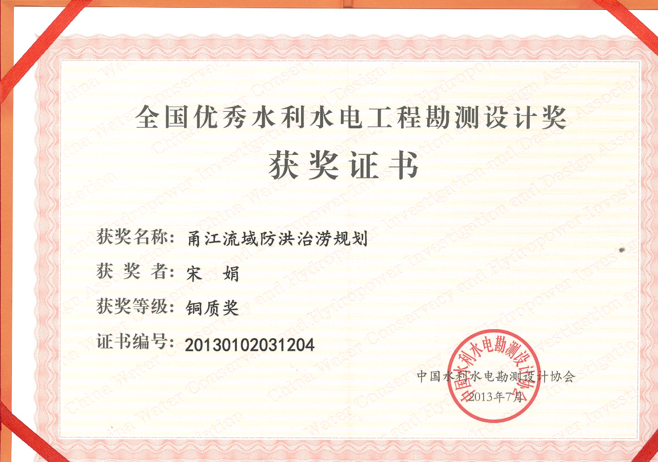 全國(guó)優(yōu)秀水利水電工程勘測(cè)設(shè)計(jì)獎(jiǎng)