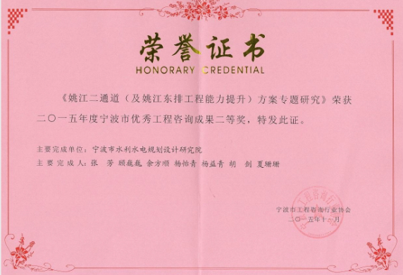 寧波市優(yōu)秀工程咨詢成果獎