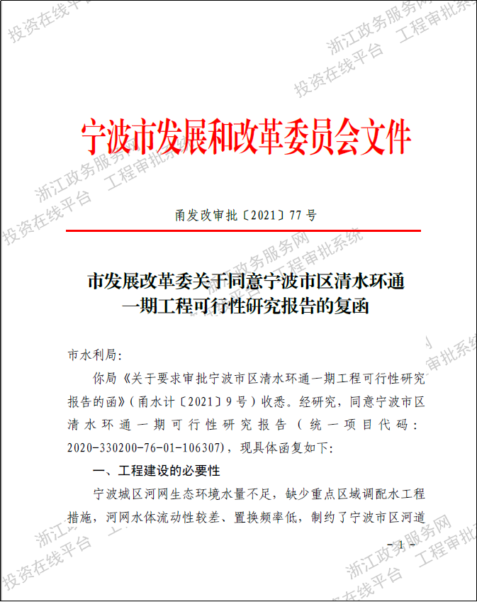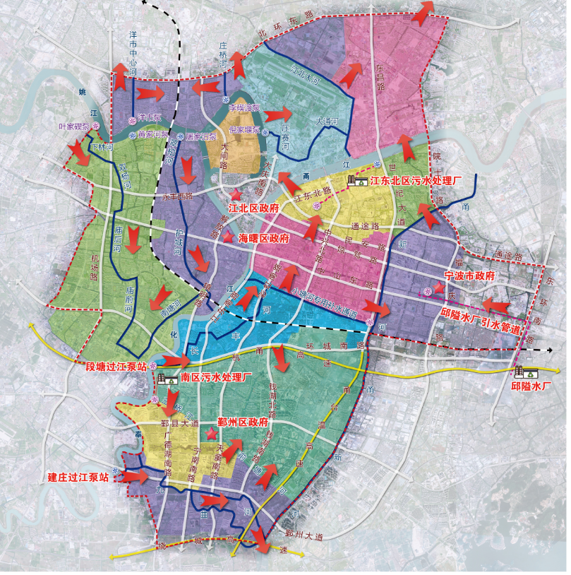 寧波市區(qū)清水環(huán)通一期工程西起機(jī)場高架、東至福慶路,北起北環(huán)高架,南至鄞州大道,面積合計約146km2,是寧波市區(qū)重要的河網(wǎng)引配水工程,亦是緩解老城內(nèi)澇壓力的有力舉措。為提升河網(wǎng)環(huán)境用水量、促進(jìn)水系互聯(lián)互通、改善水體流態(tài),寧波市區(qū)清水環(huán)通一期工程創(chuàng)新性的引入“精準(zhǔn)補(bǔ)水、高速水路”的計理念,切實解決了寧波城區(qū)現(xiàn)狀大水漫灌的河網(wǎng)調(diào)水模式下調(diào)水效率低下、補(bǔ)水針對性不強(qiáng)等痛點、難點問題。該工程可研報告于2021年5月獲寧波市發(fā)展和改革委員會批復(fù)。