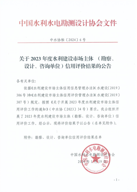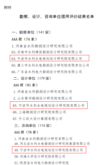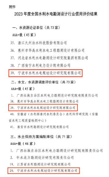 4項(xiàng)AAA,3項(xiàng)AAA+!我院在2023年度水利建設(shè)市場(chǎng)主體及全國(guó)水利水電勘測(cè)設(shè)計(jì)行業(yè)信用評(píng)價(jià)中再創(chuàng)佳績(jī)