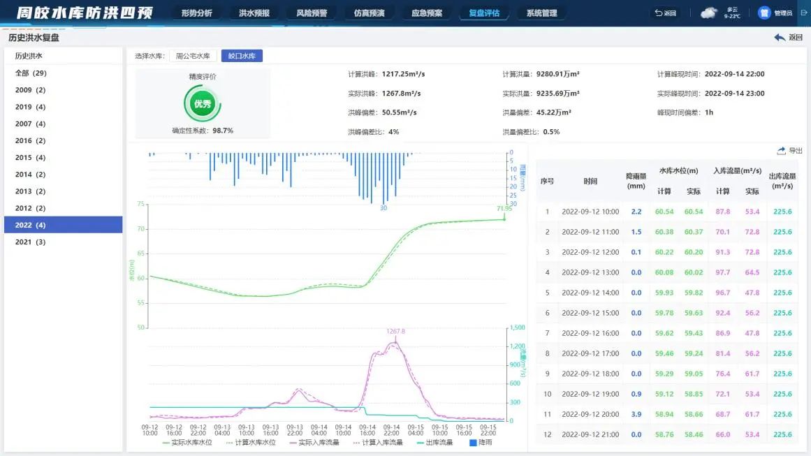“梅花”臺風期間,利用系統(tǒng)洪水預報功能實現精準預報,指導水庫預泄工作。