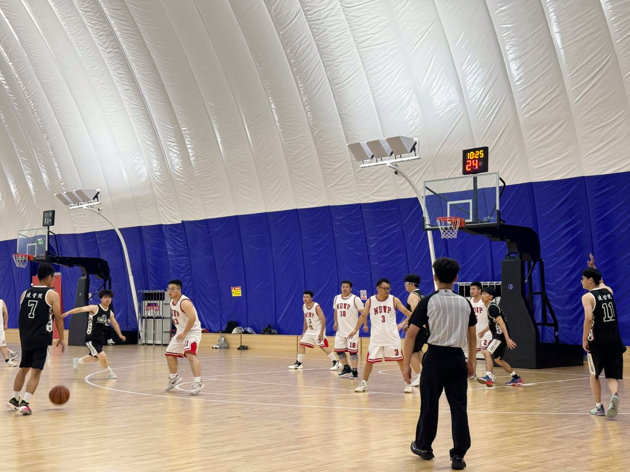開幕式后,由四支隊(duì)伍首先拉開比賽序幕,分別是規(guī)劃院VS建設(shè)管理院,勘察院VS行政智慧院聯(lián)隊(duì)。隨著一聲哨響,規(guī)劃院、建設(shè)管理院的兩支隊(duì)伍拉開首場(chǎng)對(duì)決。一開場(chǎng),雙方迅速進(jìn)入狀態(tài)。規(guī)劃院隊(duì)率先爭(zhēng)奪籃板,順利得分。建設(shè)管理院隊(duì)不甘示弱,連攻帶守,幾度猛攻。雙方比分你追我趕,奮起直追。觀眾吶喊此起彼伏,氣氛熱烈。最終,建設(shè)管理院隊(duì)穩(wěn)定發(fā)揮、密切配合,以13分的優(yōu)勢(shì)打敗規(guī)劃院隊(duì),以37:24的最終成績(jī)拿下首場(chǎng)比賽的勝利。